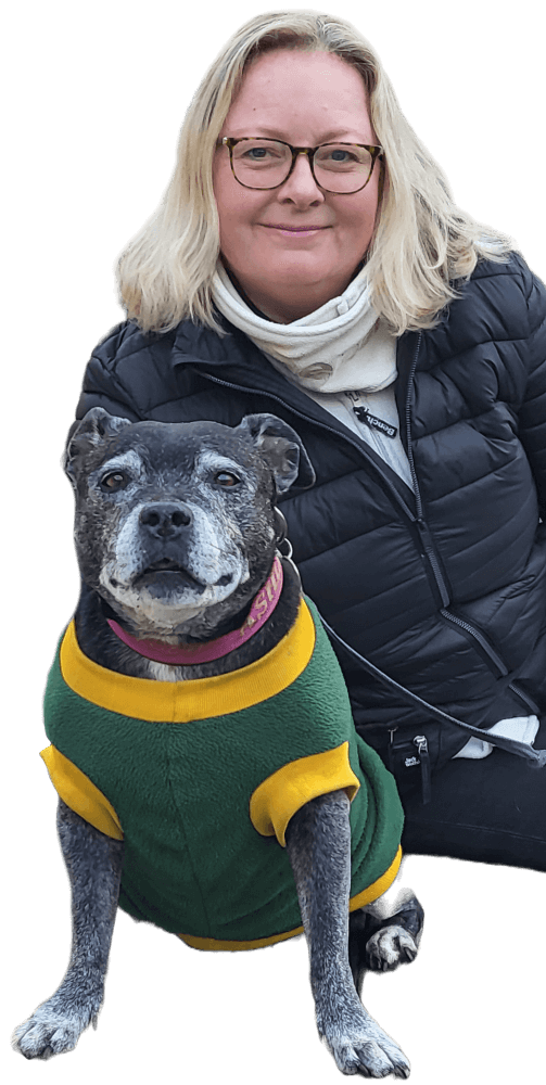 My dog Ashley, the main character in the books, is an English Staffordshire bullterrier. She is 12 years old and has very kindly supplied me with so much material, that I was able to write two books full of true adventures and funny stories about her, family and friends.